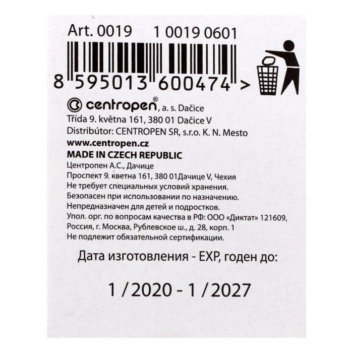 Картриджи для перьевых ручек Centropen 0019/06, 6 штук, чернила синие интересное: