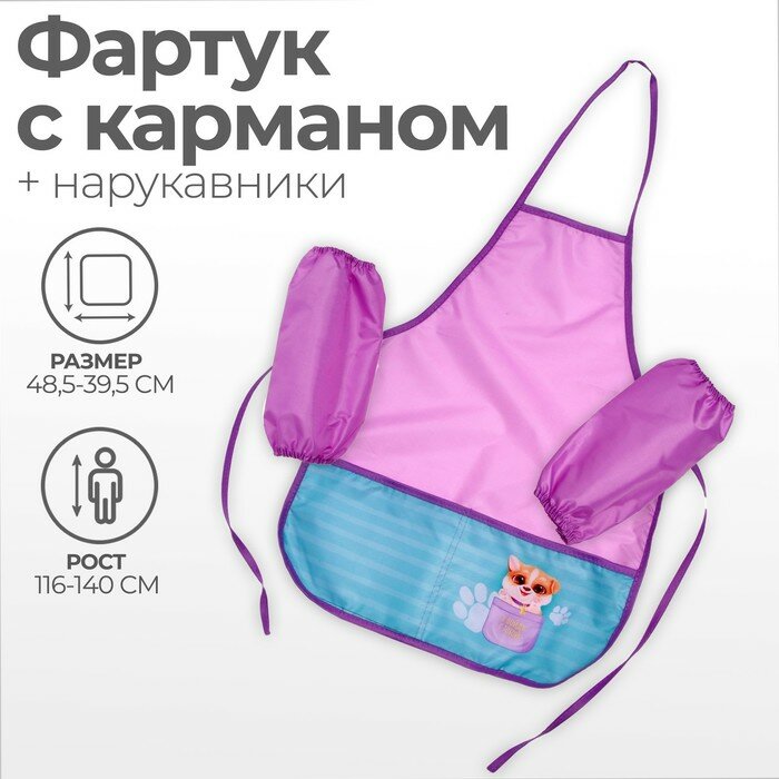 Фартук для труда + нарукавники, 485 х 395/250 х 160 мм, рост 116-134 см, Calligrata "Милый пёсик", сиреневый интересное: