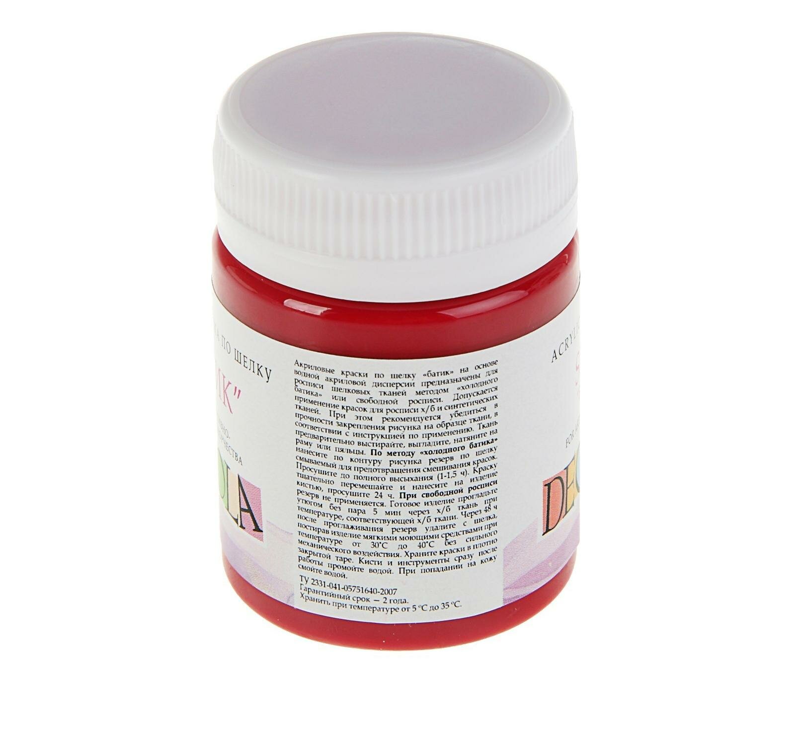 Краска по шелку "Батик", банка 50 мл, Decola, Карминовая 4428319 (акриловая на водной основе)