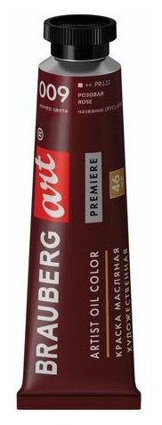 Краска масляная художественная BRAUBERG ART PREMIERE, 46 мл, проф. серия, ализариновая красн, 191409