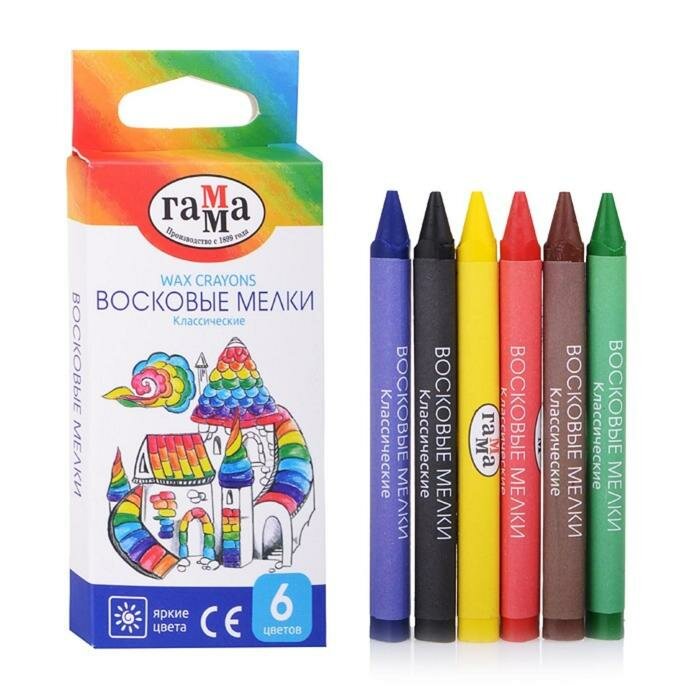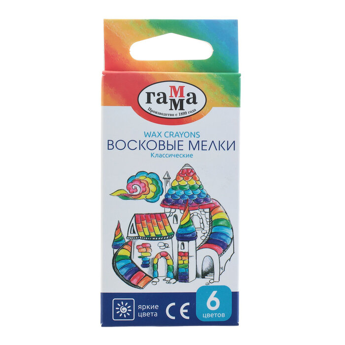 Купить Мелки восковые 6 цветов, "Гамма" "Классические", треугольные, европодвес