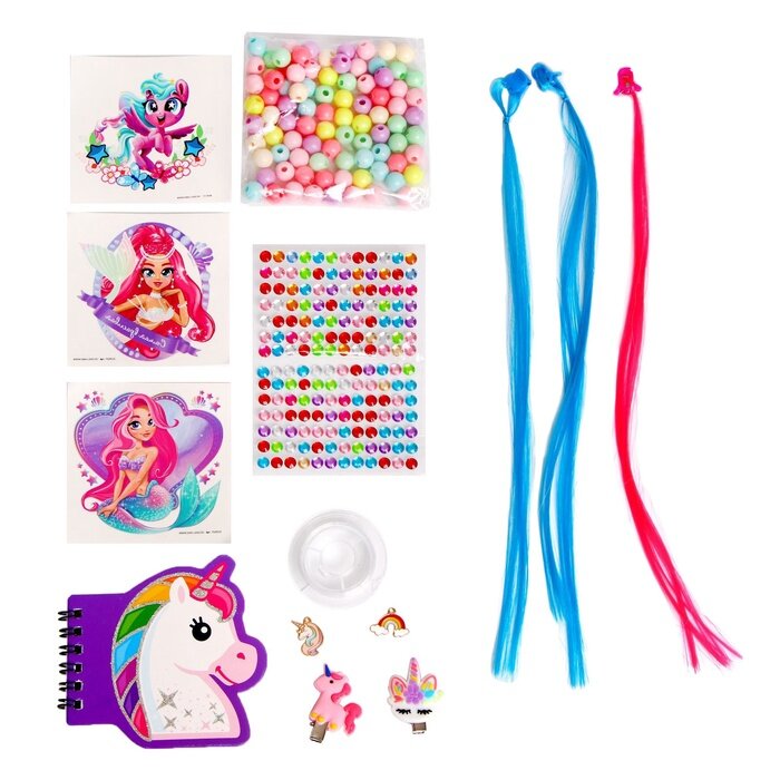 Набор с прядями, тату, стразами, в сумочке интересное: