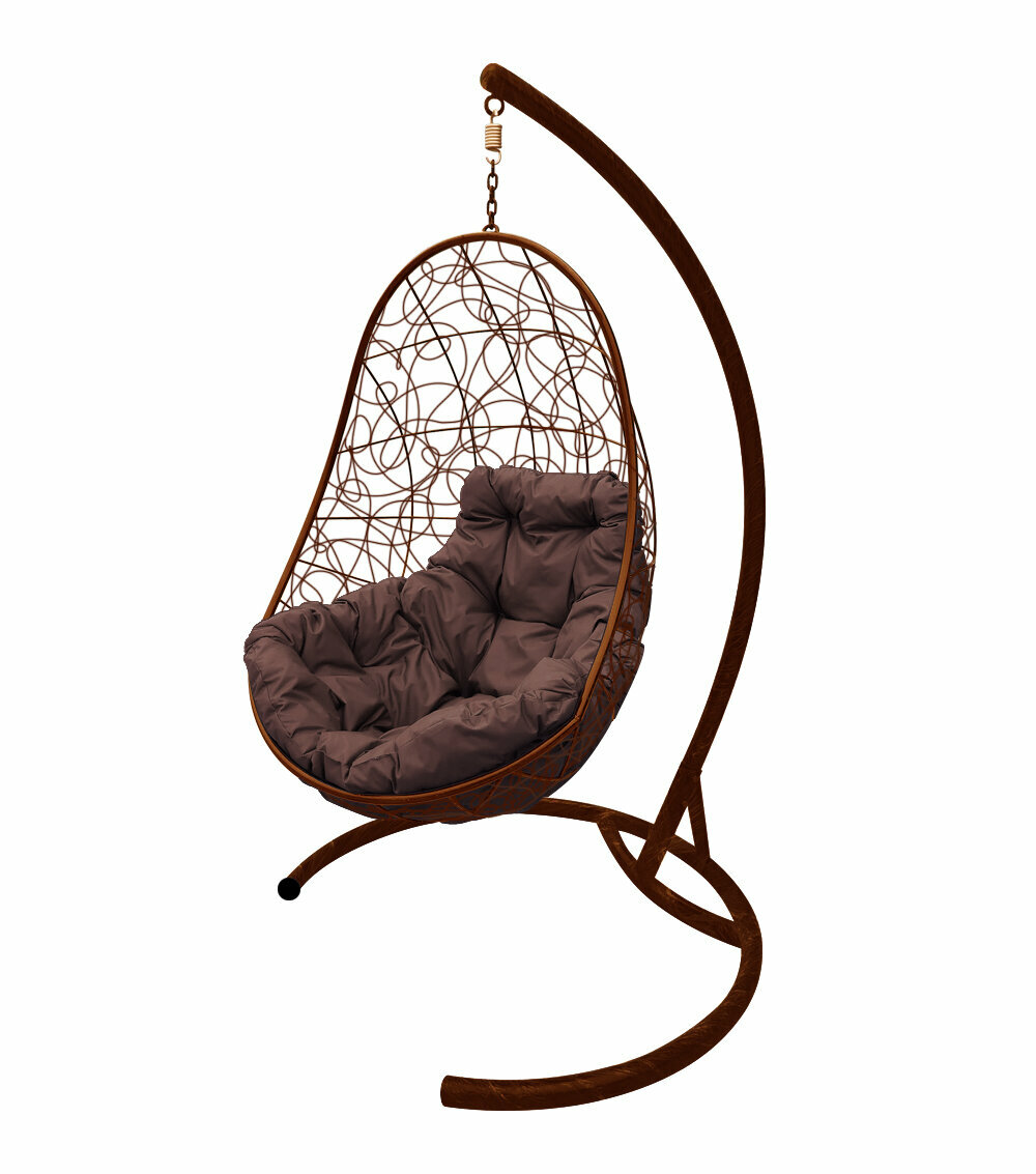 Подвесное кресло M-Group овал ротанг коричневое, коричневая подушка