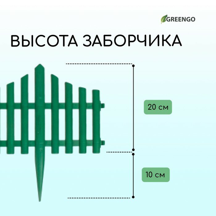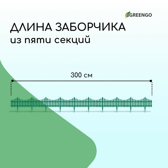 Ограждение декоративное, 30 ? 300 см, 5 секций, пластик, зелёное, Greengo Greengo 3296973 .