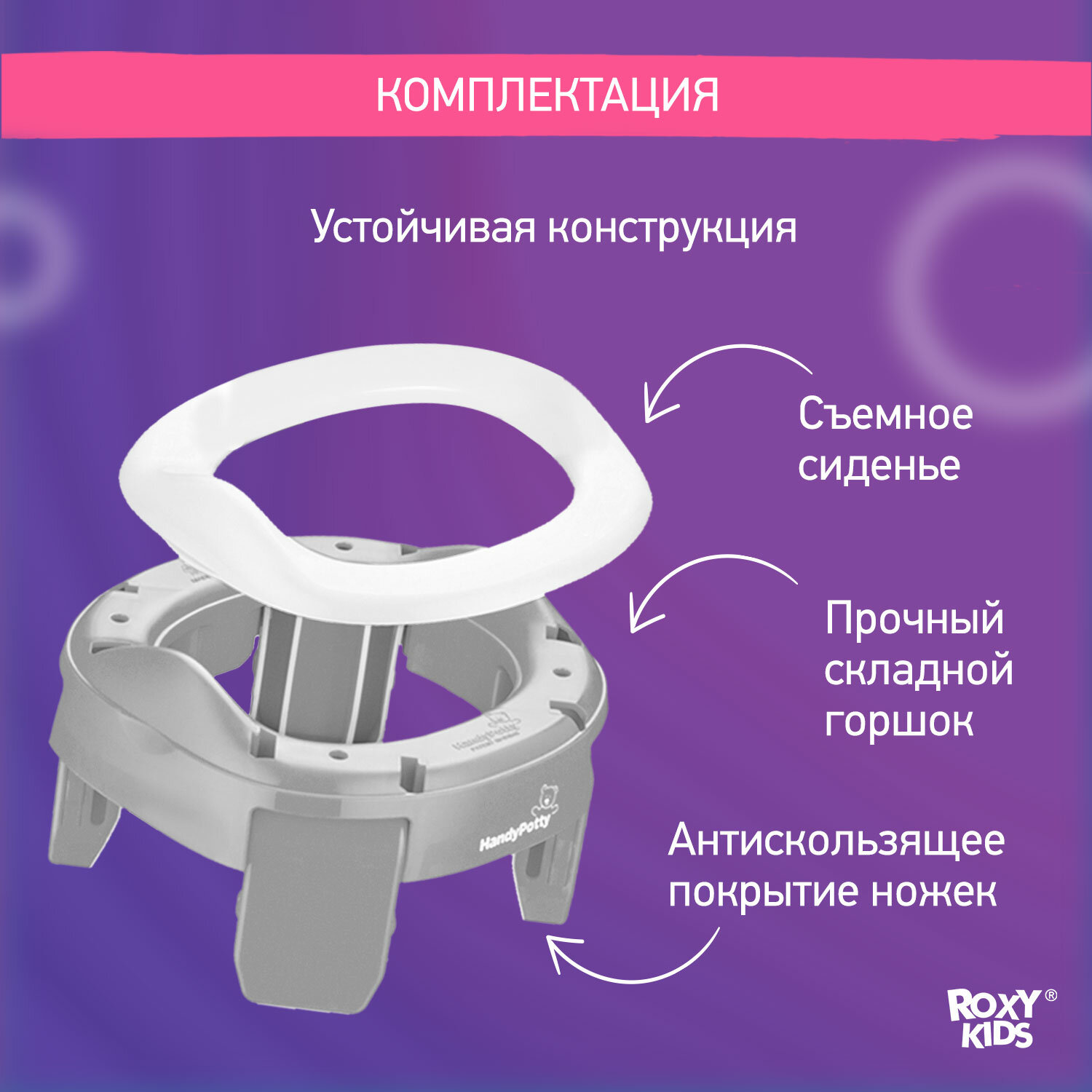 Горшок детский складной дорожный 2в1 для малышей HandyPotty ROXY-KIDS