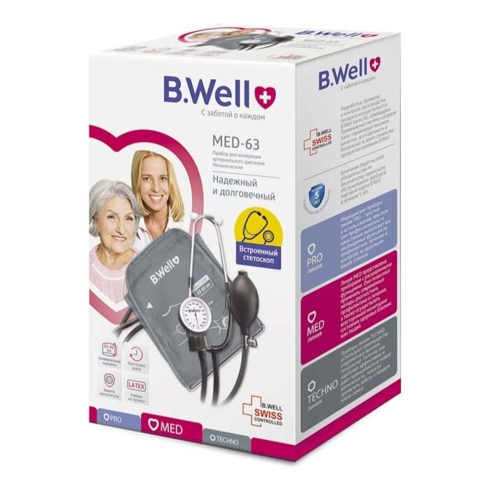 B.Well Тонометр механ. MED-63, встроен. стетоскоп, манжета с кольцом M-L (22-42 см)