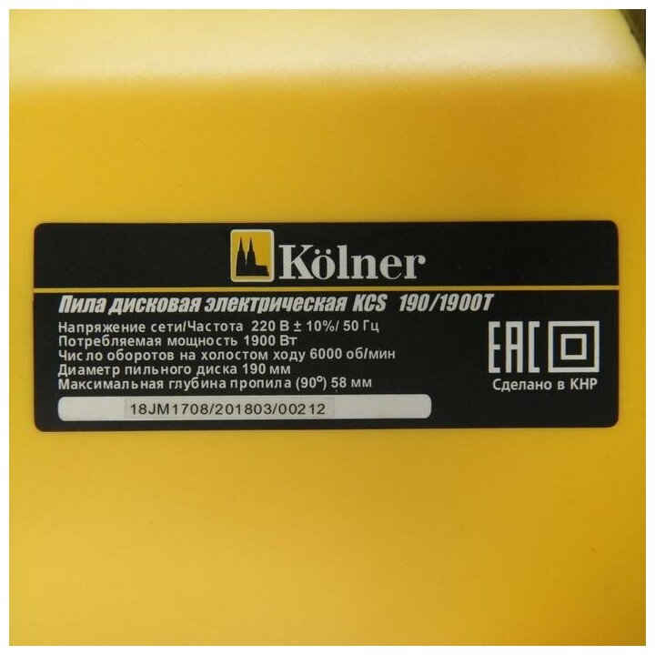 Пила дисковая электрическая KOLNER KCS 190/1900T интересное: