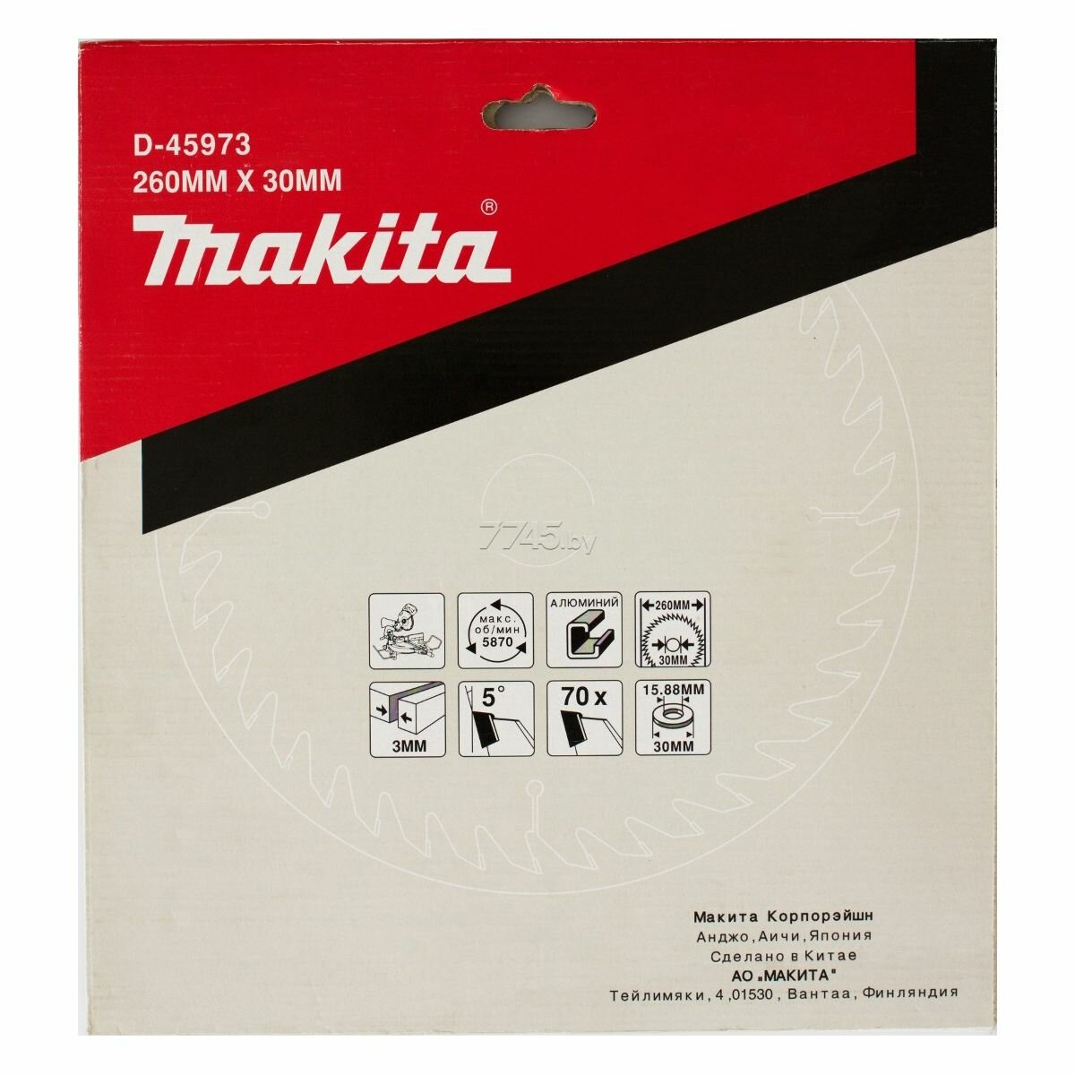 Makita D-45973 Диск пильный ф260х30\15.88х3.0мм,70зуб,д\алюминия