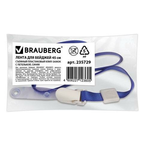 Лента для бейджей, 45 см, съемный пластиковый клип-замок с петелькой, синяя, BRAUBERG, 235729 (арт. 235729)