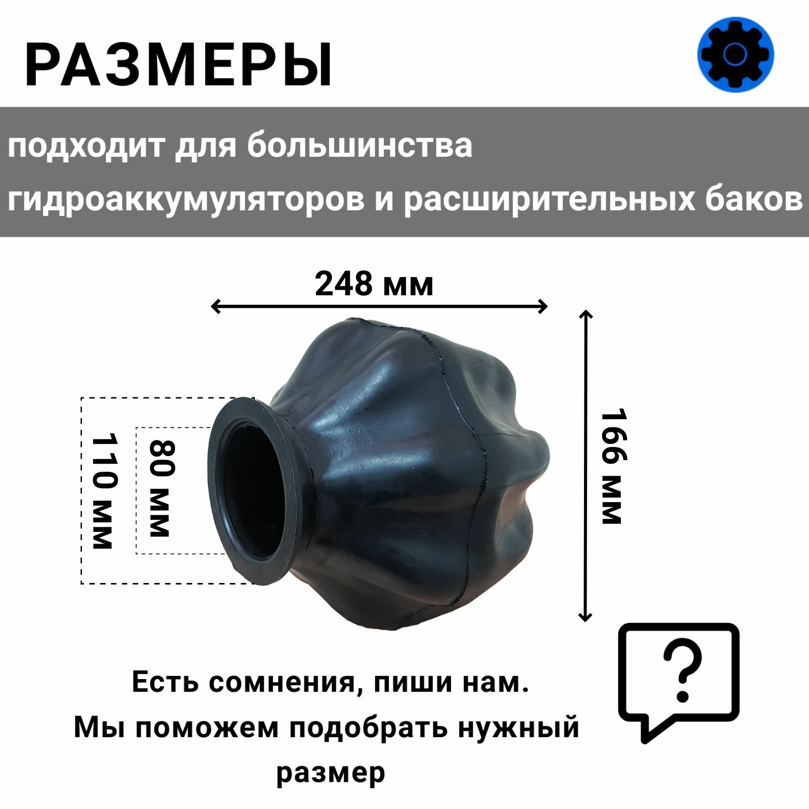 Мембрана для гидроаккумулятора 25LT-110 EPDM (9627) Eurotechnology, диаметр горловины внутрений 80, диаметр горловины внешний 110, для баков от 24 л. интересное: