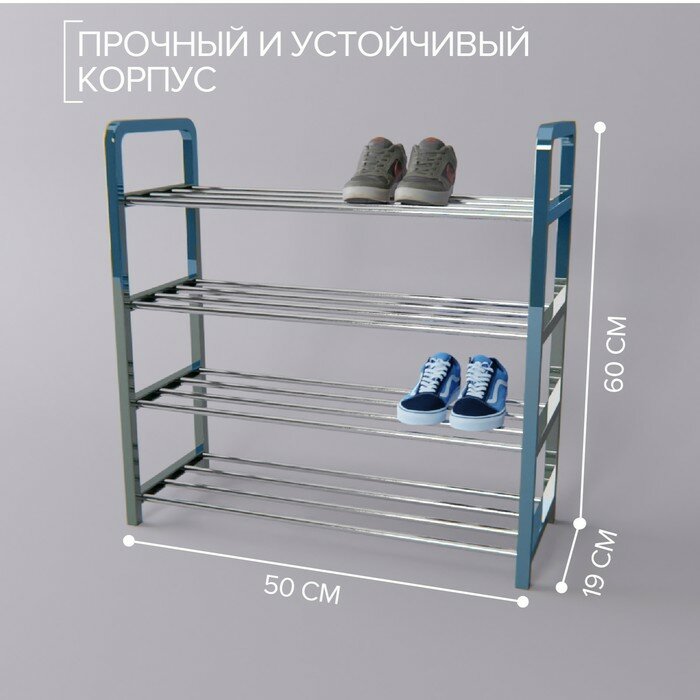 Купить Обувница Доляна, 4 яруса, 50?19?60 см, цвет синий