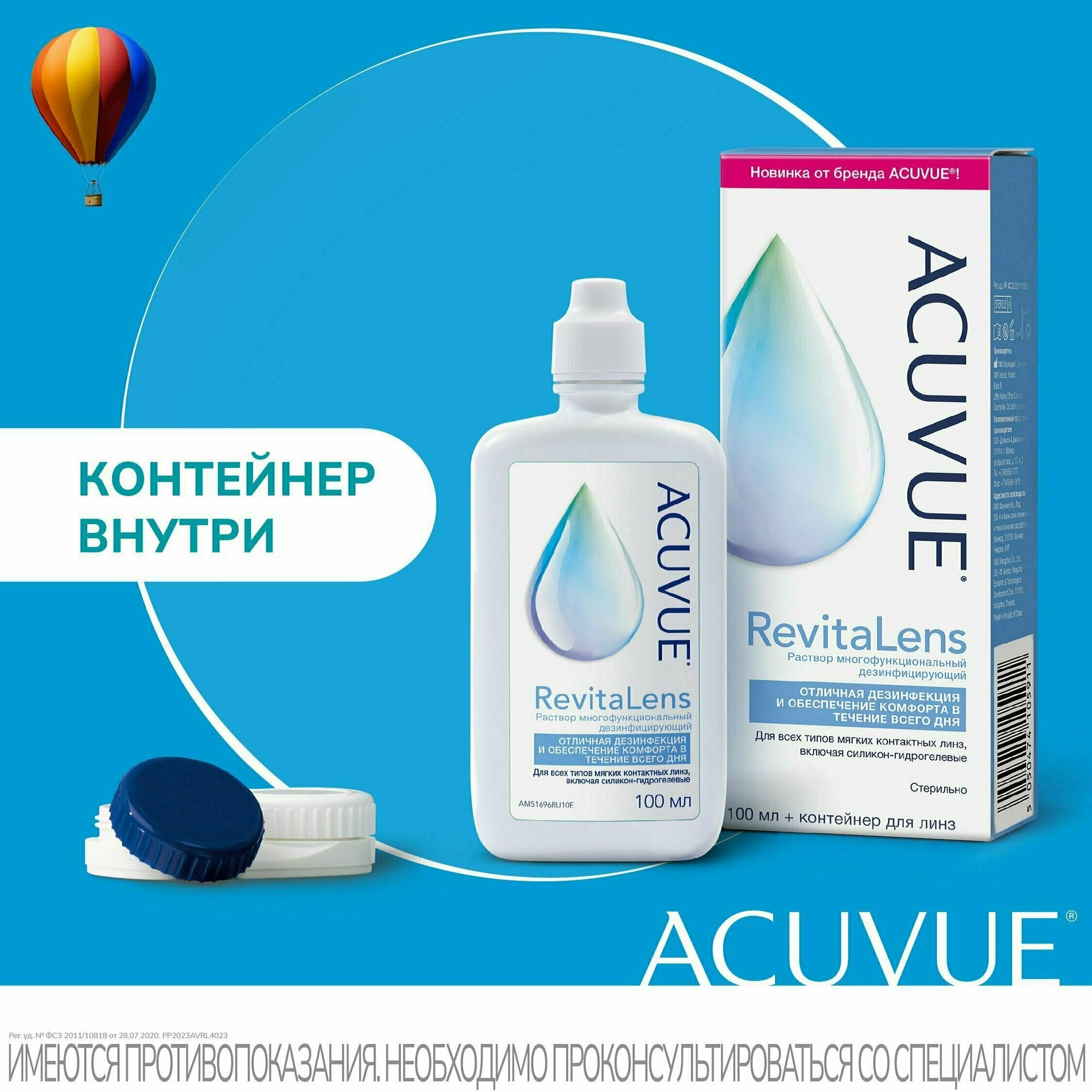 Многофункциональный раствор для мягких контактных линз Acuvue RevitaLens (с контейнером) 100 ml
