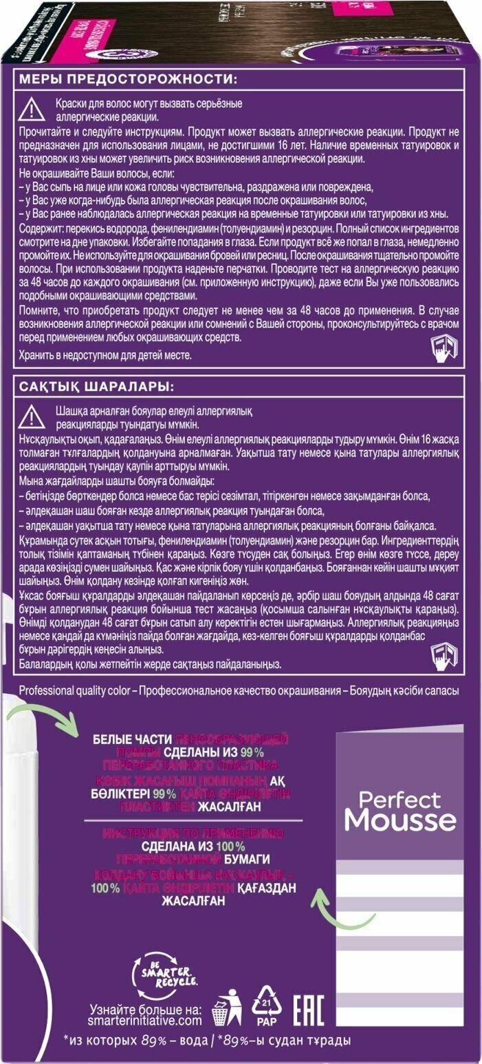 Краска-мусс для волос Perfect Mousse сияющий и стойкий цвет 300 Черный каштан 92.5мл