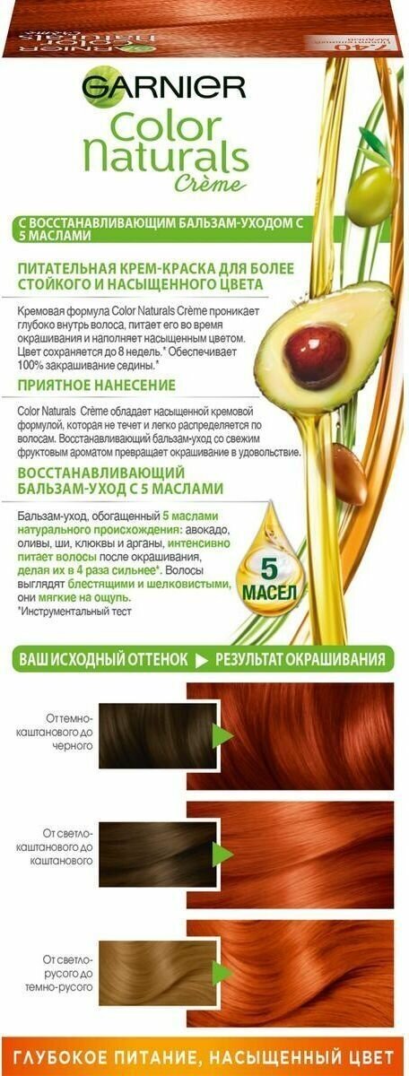 Крем-краска для волос Garnier Color Naturals с 3 маслами, тон 7.40, Пленительный медный