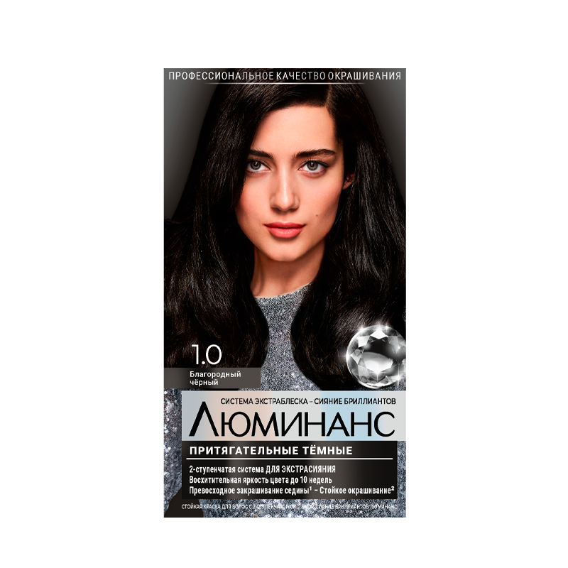 Люминанс краска для волос Притягательные тёмные, 1.0 благородный черный, 165 мл