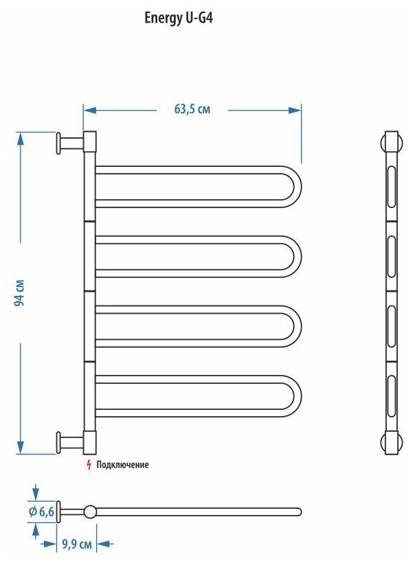 Электрический полотенцесушитель Energy U - G4 поворотный цвет хром, скрытое/наружное подключение