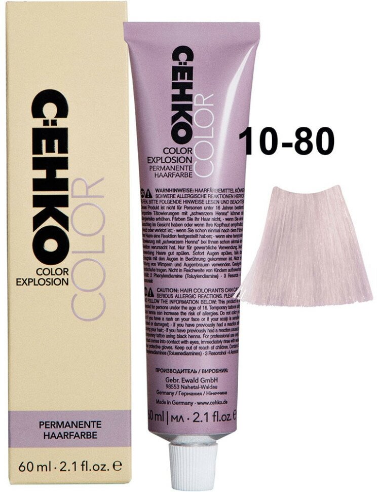 Профессиональная краска для волос 10/80 Ультра светлый фиолетовый блондин, для блонда, стойкая, перманентная, для седых волос, 60 мл, C:EHKO COLOR EXPLOSION
