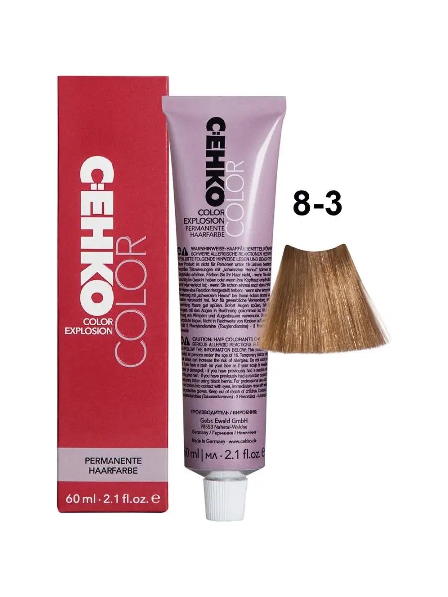 Профессиональная краска для волос 8/3 Светлый золотистый блондин, русый, стойкая, перманентная, для седых волос, 60 мл, C:EHKO COLOR EXPLOSION