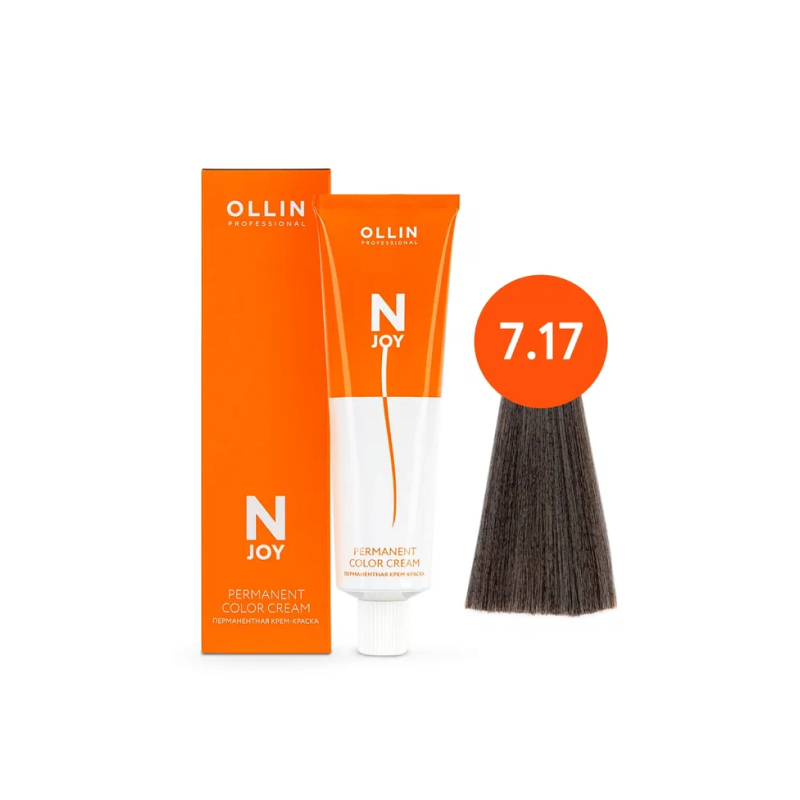 Ollin, Крем-краска для волос N-Joy 7/17 Русый пепельно-коричневый, перманентная, 100 мл