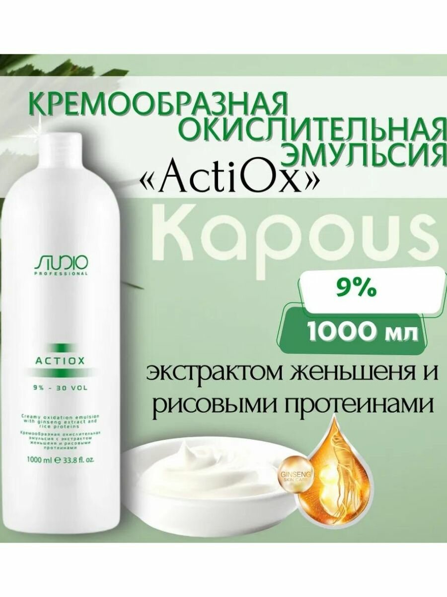 Кремообразная окислительная эмульсия Kapous Studio Professional «ActiOx» с экстрактом женьшеня и рисовыми протеинами 9%, 1000 мл