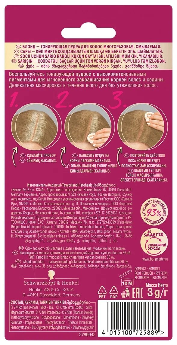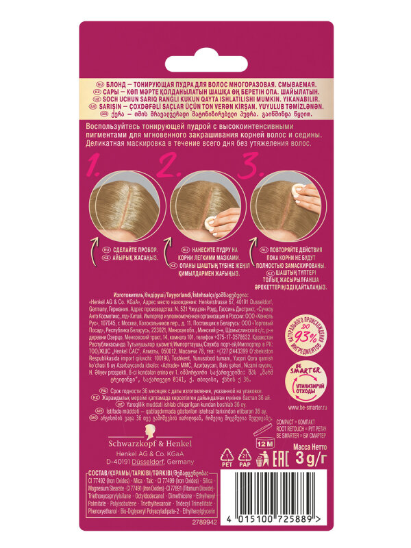 СохранитьPalette Тонирующая пудра Root Retouch, блонд, 3 г интересное: