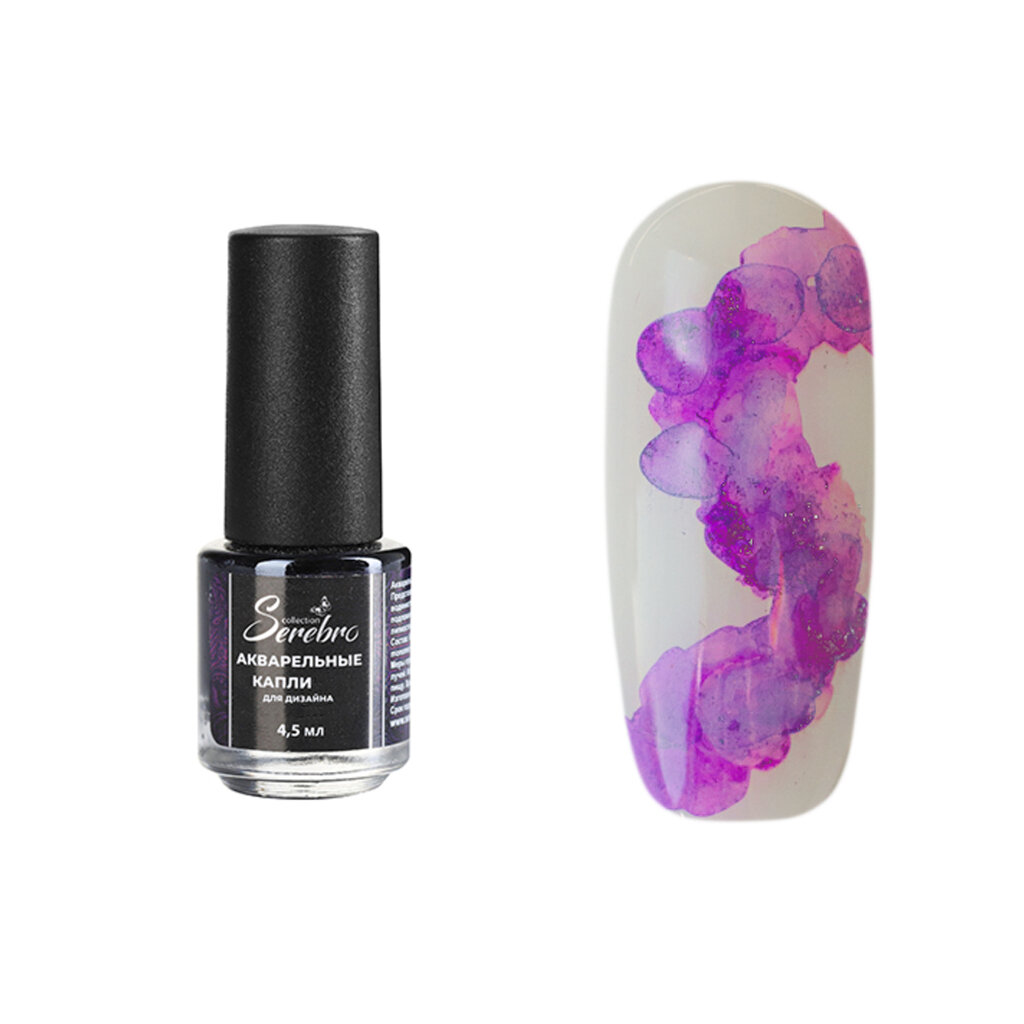 Акварельные капли для маникюра Serebro №9 для дизайна ногтей, фиолетовый, 4,5 мл