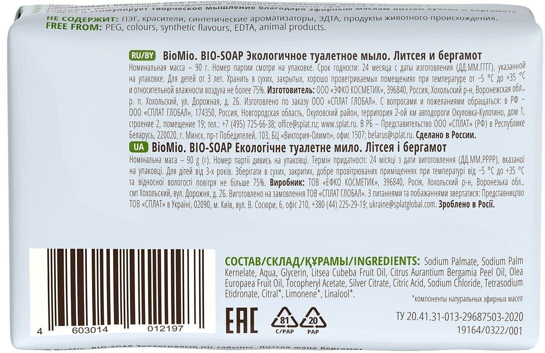 Туалетное мыло BioMio BIO-SOAP апельсин, лаванда и мята, 90 г 520.04188.0101