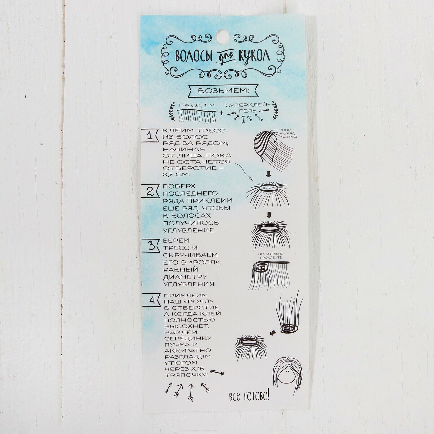| Отзыв: | На голову куклы одного метра мало , нужно как минимум 2 метра. То есть 2 упаковки. |