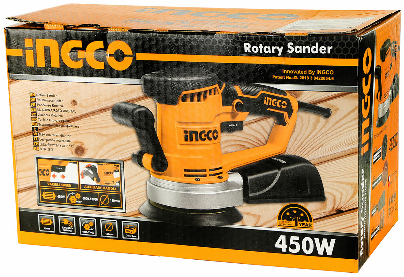 Шлифовальная орбитальная машина INGCO RS4508 450Вт,4000/13000 тарелка 150мм