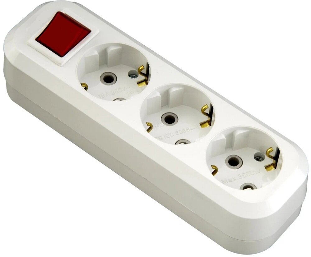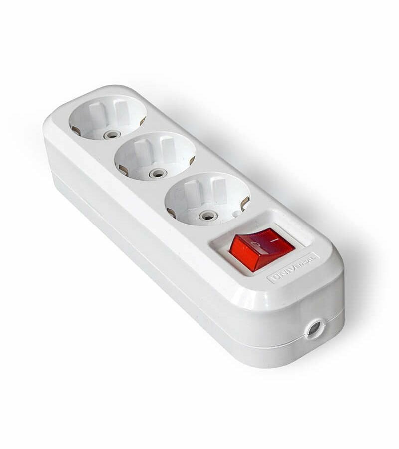Колодка на 3 гнезда с выключателем c заземлением белая / Колодка на 3 гнезда с выключателем с заземлением белая