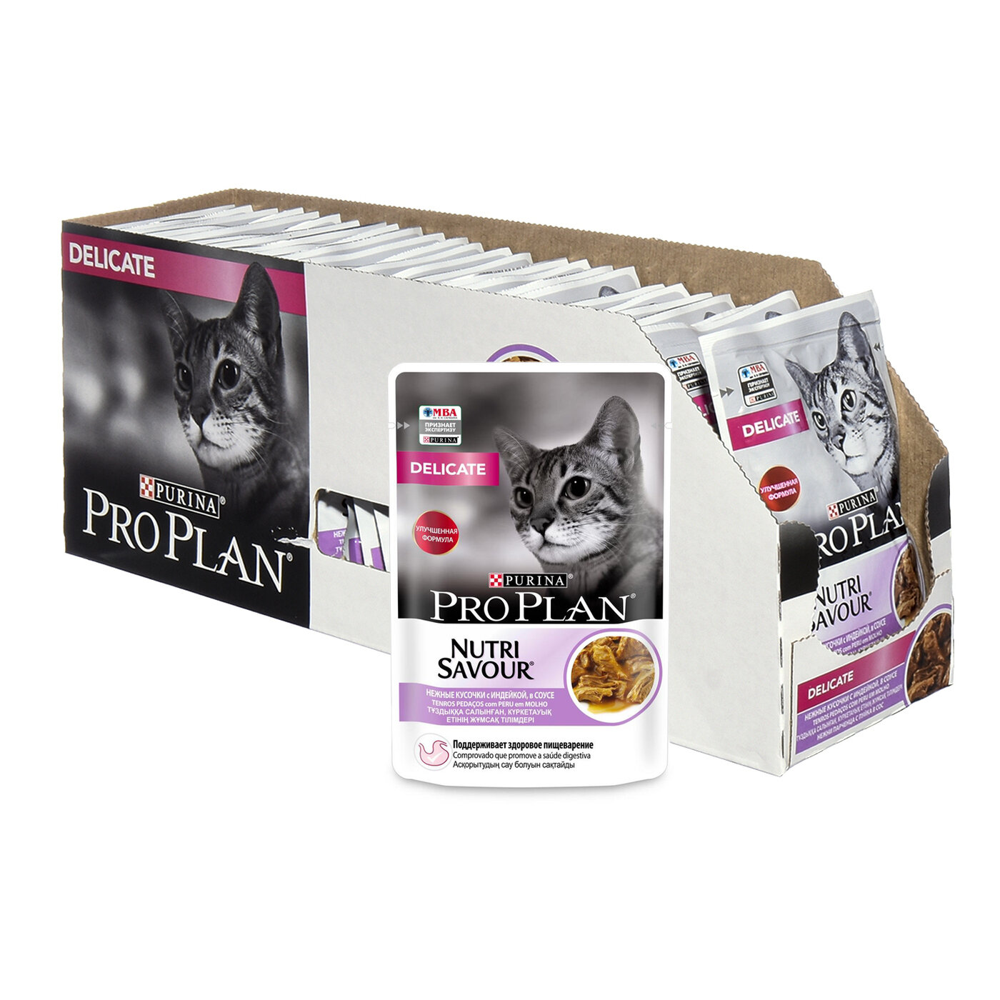 Корм для кошек PRO PLAN Delicate с чувствительным пищеварением, с индейкой в соусе пауч 85г (упаковка - 26 шт)