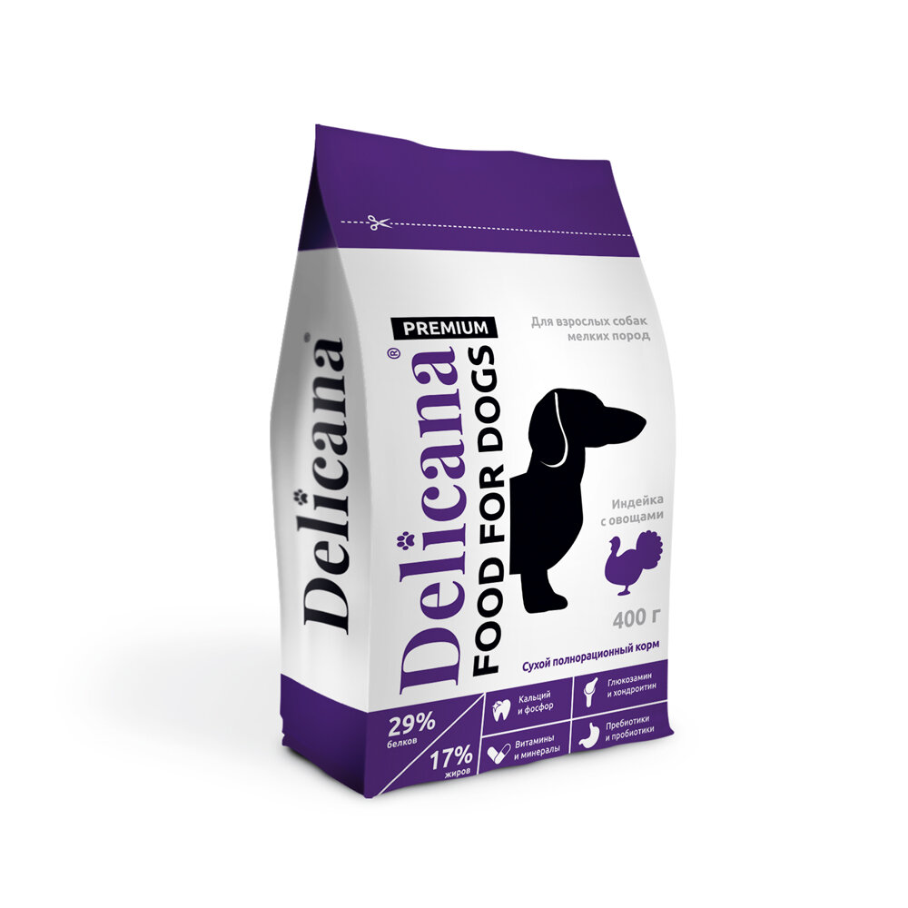 Купить Delicana Сухой корм для собак мелких пород Индейка с Овощами 400г