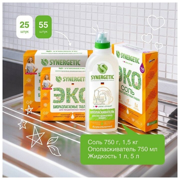 Соль Synergetic высокой степени очистки природного происхождения для посудомоечной машины, 1.5кг