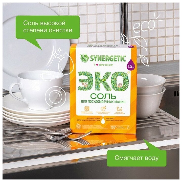 Купить Соль для посудомоечных машин Synergetic 1,5 кг, обладает антикоррозийным эффектом