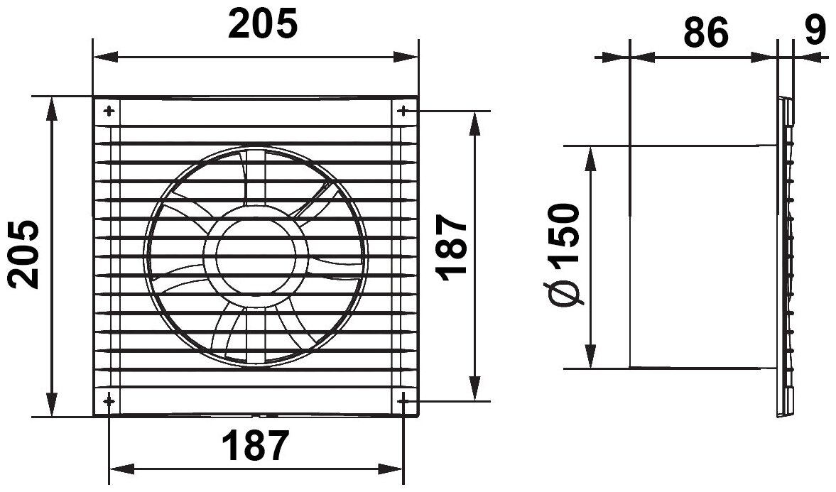 Вентилятор вытяжной AURAMAX A 6S, 205х205 мм, d=150 мм, 220‒240 В