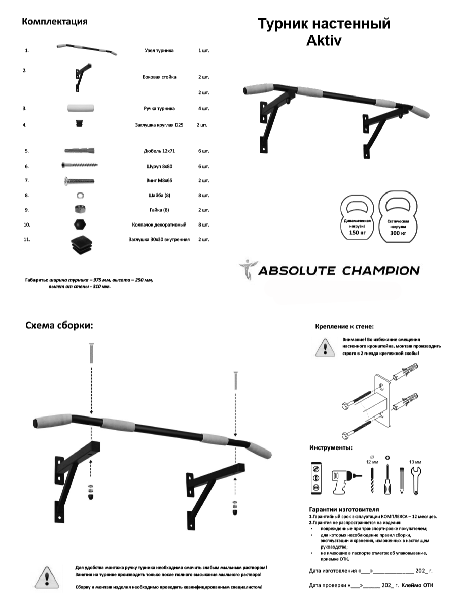 Absolute Champion Турник настенный Aktiv черный АЧ 8538