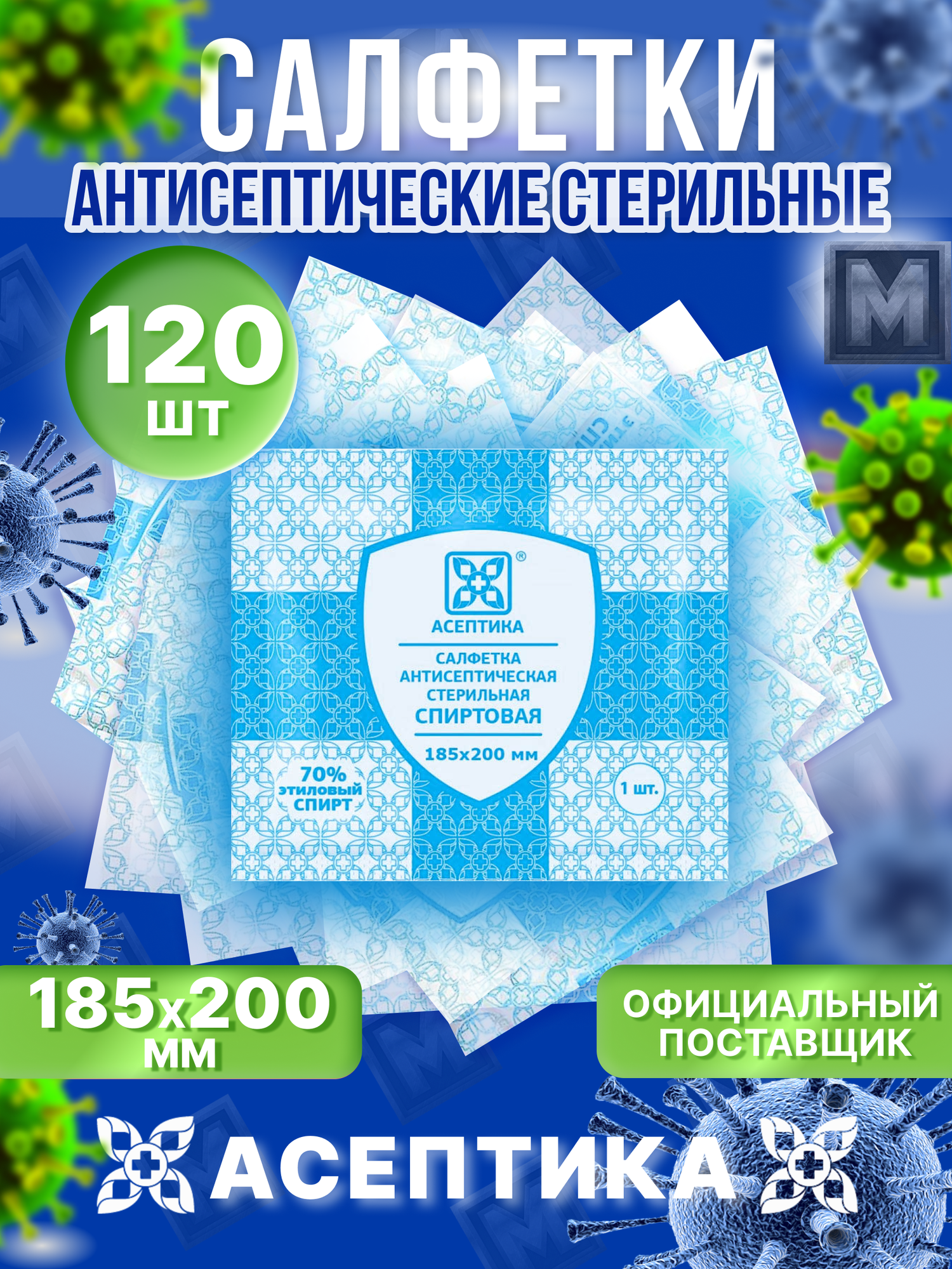 Купить Салфетки антисептические стерильные спиртовые 185х200мм 120шт