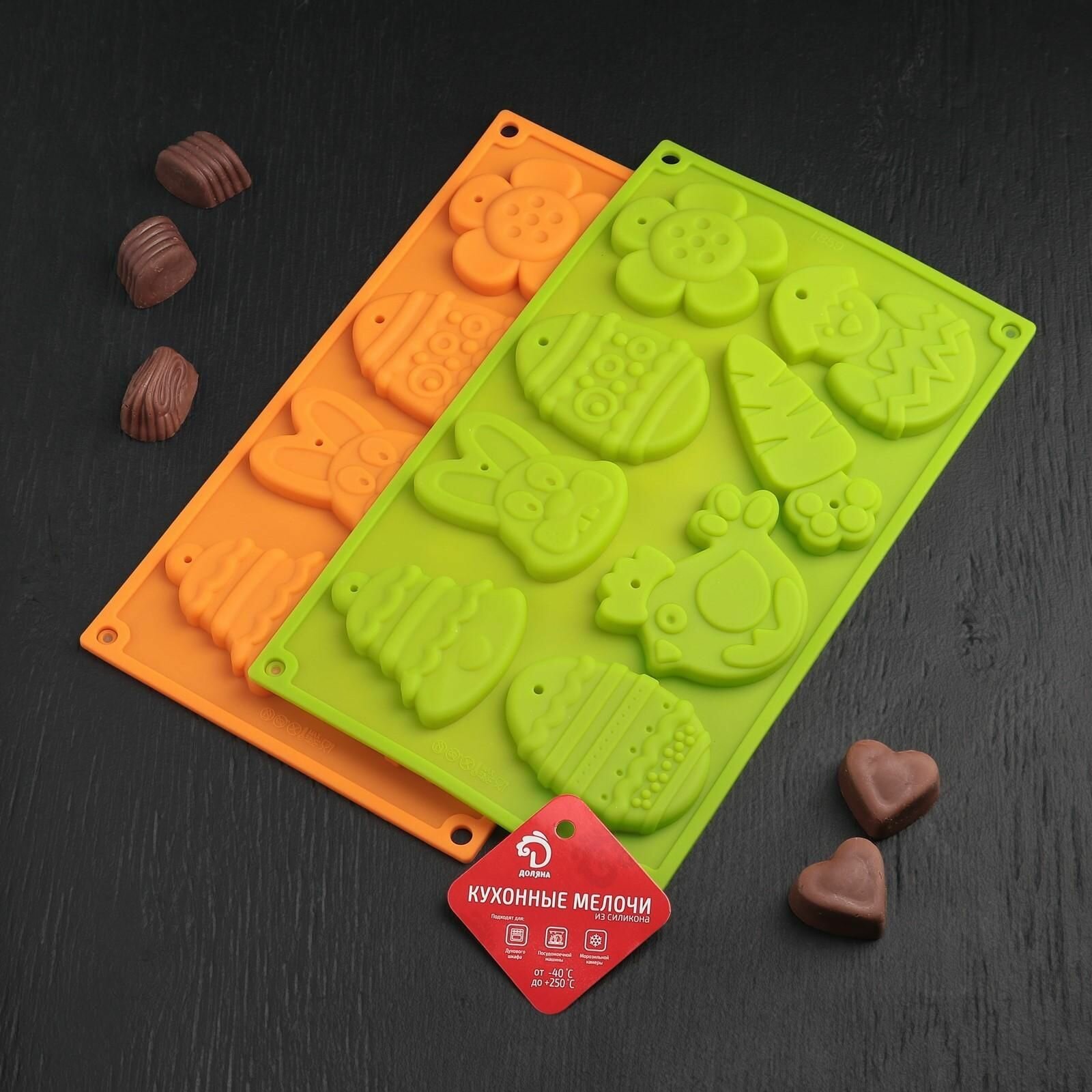 Доляна Форма силиконовая для шоколада Доляна «Животные», 30×17×1 см, 8 ячеек (7,7×6 см), цвет микс