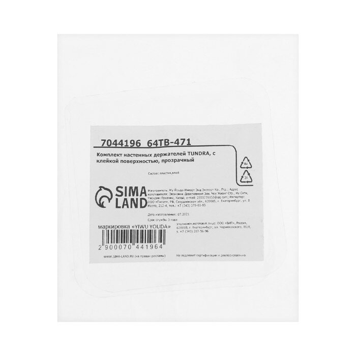 Комплект настенных держателей тундра, с клейкой поверхностью, 60х60х10 мм, прозрачный интересное: