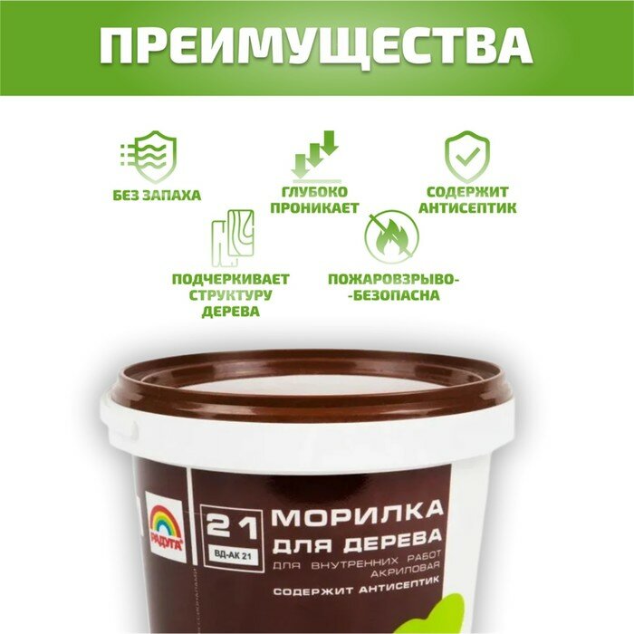 Морилка акриловая акрилатная Радуга 21 вд-ак 21 цвет орех 1кг для внутренних работ без запаха