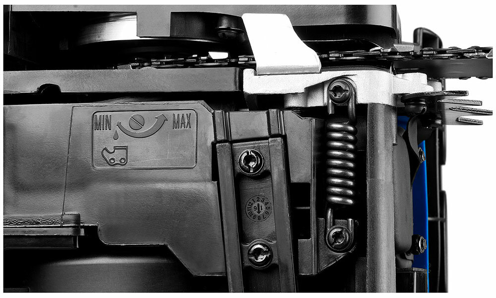 | Минусы: | Приложенным ключом неудобно регулировать натяжения цепи, Зуб на натяжном винте слишком маленький хлипкий и быстро износится.