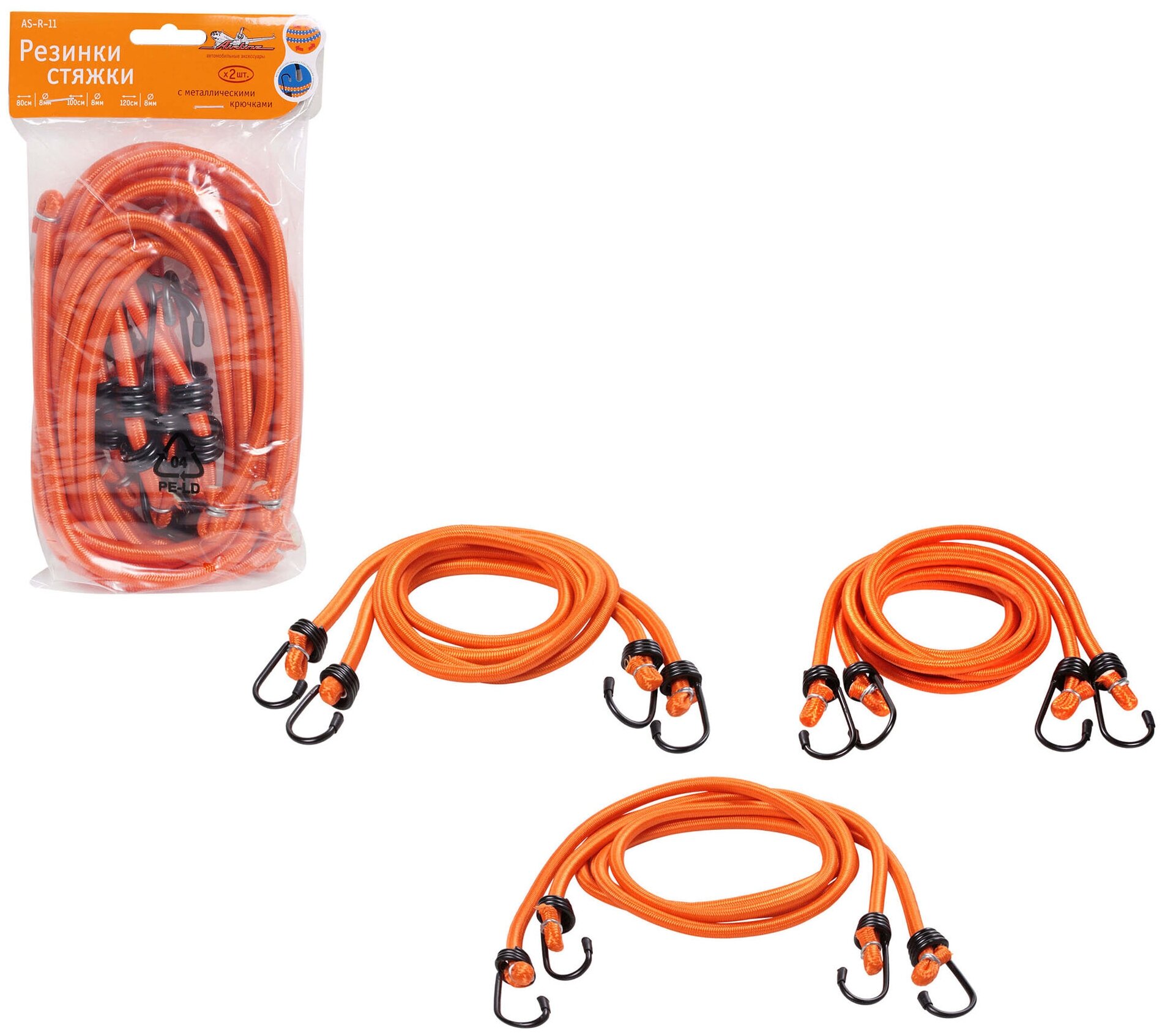 Купить Резинки-стяжки набор 6 шт.: 2 шт.-80см, 2шт.-100см, 2шт-120см, D-8 мм, (метал. крючки) AS-R-11