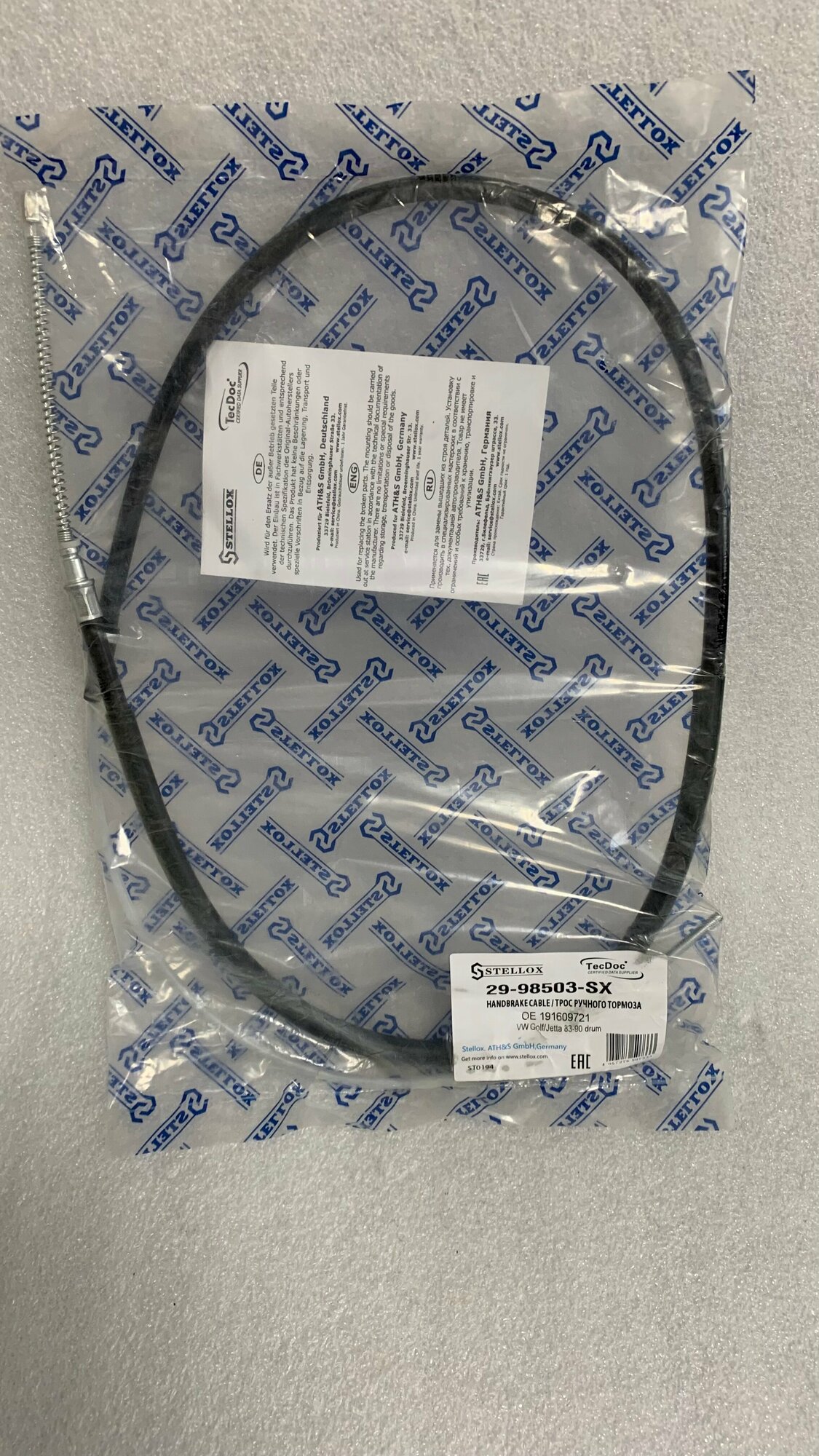 29-98503-SX Трос ручного тормоза л. п. Бренд STELLOX для автомобиля VW Golf/Jetta 83-90 drum