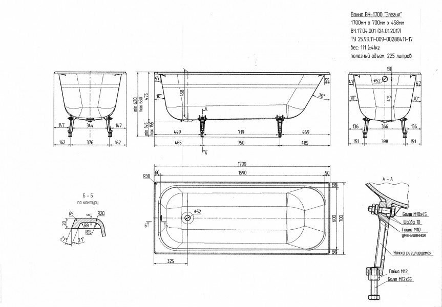 Ванна чугунная Универсал Элегия 170x70 интересное: