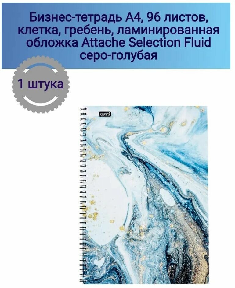 Бизнес-тетрадь А4, 96 листов, клетка, гребень, ламинированная обложка. Attache Selection Fluid серо-голубая