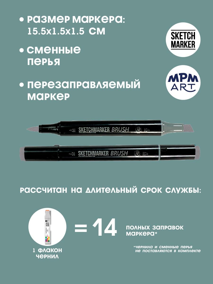 СохранитьДвусторонний заправляемый маркер SKETCHMARKER Brush Pro на спиртовой основе для скетчинга, цвет: TG5 Тонированный серый 5 интересное: