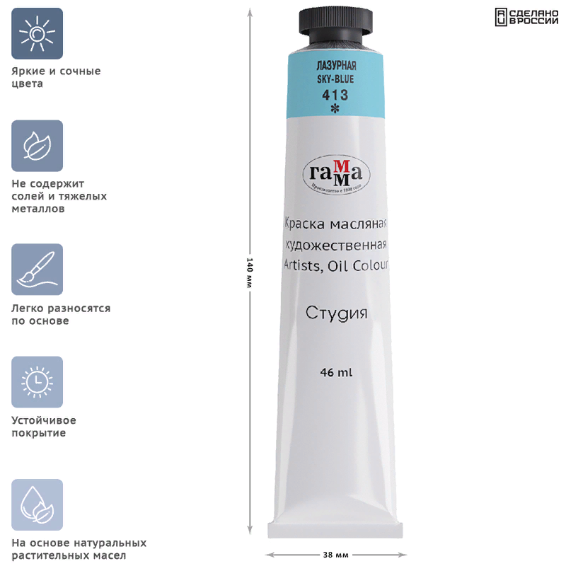 СохранитьКраска масляная в тубе 46 мл, Гамма "Студия", №413 лазурная интересное: