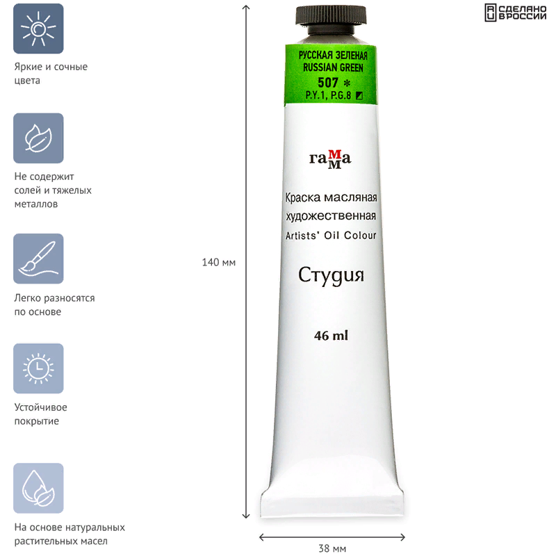 Купить Краска масляная в тубе 46 мл, Гамма "Студия", №507 русская зелёная