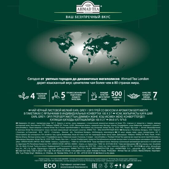Чай Ahmad Tea "Earl Gray", черный с бергамотом, 100 фольг. пакетиков по 2г