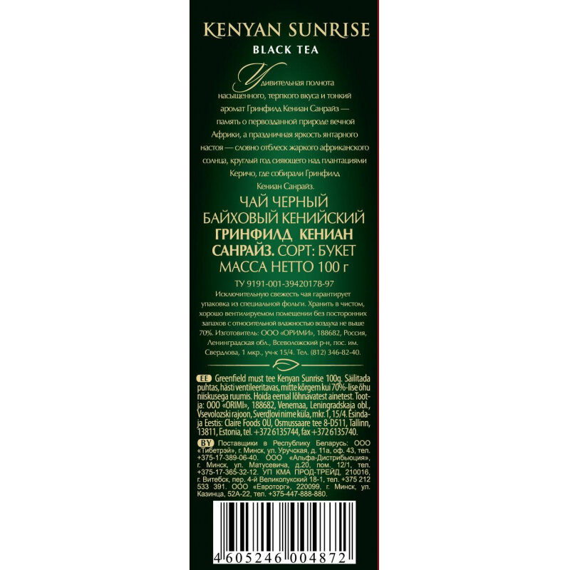 Купить Чай Greenfield Кениан Санрайз 100г к/п
